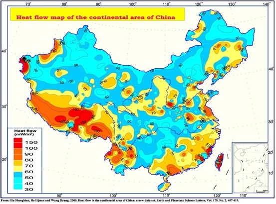 在中國地溫研究中發(fā)現(xiàn),各地區(qū)地溫梯度的變化很大。不同地點(diǎn)地溫梯度值不同,從各地研究經(jīng)驗來講,國內(nèi)地下地溫梯度通常為(1-3)℃/100m,分布具有東部高、西部低;南部高、北部低的總趨勢。
