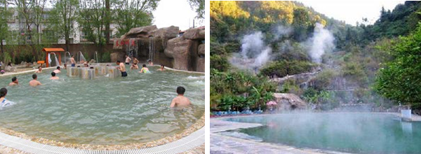 熱水溫泉地處老圖山脈東緣山麓,分布面積為0.42平公里,日最大可采儲(chǔ)量1800~2100噸,中心孔深503米,自流水溫高達(dá)當(dāng)?shù)胤悬c(diǎn)97℃,是全國水溫最高的溫泉之一。泉水中含有碳酸氯鈉、硫化氫、二氧化硅、氡、氟、碘、硼、銅、銀、鉀、鈦、鈄、鎂、鋰、鈣等卜幾種化學(xué)物質(zhì)及微量元素,對神經(jīng)衰弱、高血壓、糖尿病、皮膚病、胃病、布氏桿菌癇、多發(fā)性神經(jīng)炎、增生性脊柱炎、氣管炎等30多種常見疾病有很好的療效和較強(qiáng)的保健作用。