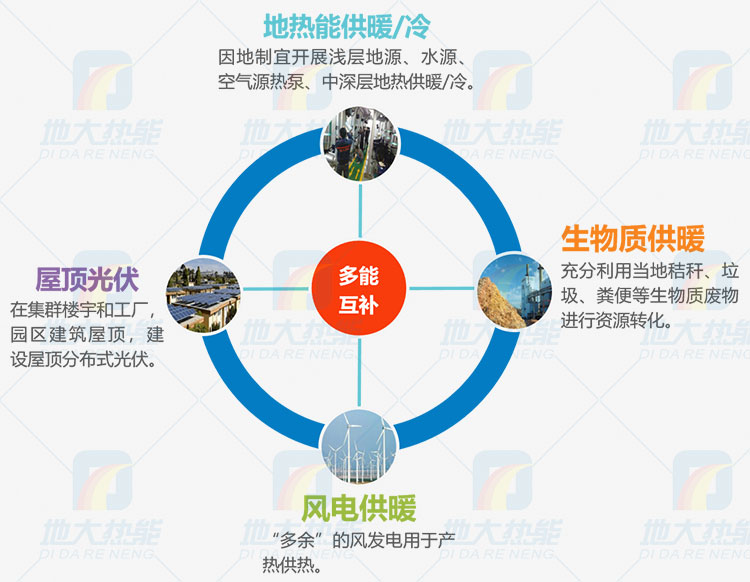 在“雙碳”目標(biāo)下,作為地?zé)崮?/a>主力的能源企業(yè)也迎來了發(fā)展新機(jī)遇。地大熱能通過綜合能源多能互補(bǔ)模式,將地?zé)?/a>這一地球本土的未來能源和來自太陽系的其他可再生能源,諸如太陽能、風(fēng)能、生物質(zhì)能、海洋能等結(jié)合起來一并加以開發(fā)利用,打造多能互補(bǔ)儲(chǔ)/供能系統(tǒng)。